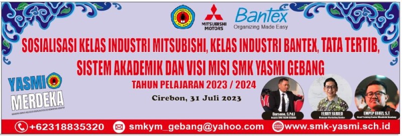 SMK Yasmi Gebang merupakan sekolah satu-satunya dengan Kelas Industri Mitsubishi di area Cirebon dan disusul yang terbaru adalah kelas industri Bantex untuk jurusan Manajemen Perkantoran dan hanya satu juga kelas industry Bantex ini di area Jawa Barat. Hal ini yang membuat SMK Yasmi Gebang tetap memepertahankan komitmen untuk tidah hanya asal menjalankan proses Pendidikan yang biasa dan standar. Tetapi dengan kelas industry yang telah berjalan ini membuat SMK Yasmi Gebang semakin berjuang dengan keras untuk memberikan pelayanan yang optimal dalam peningkatan mutu Pendidikan. Seperti yang telah dilaksanakan kegiatan pada Senin, 31 Juli 2023 yaitu sosialisasi kelas industry Mitsubishi dan kelas industry Bantex kepada para wali peserta didik dan langsung dihadiri oleh Bapak Empep Fauzi, ST sebagai Head Training Center (Mitsubishi Motors) Bandung dalam program Mitsubishi Education Program (MEP) dan Mitsubishi School Program (MSP) untuk jurusan TKR, dan hadir pula Bapak Ferry Faried sebagai Manager Marketing dari PT Bino Mitra Sejati (Bantex) Indonesia.