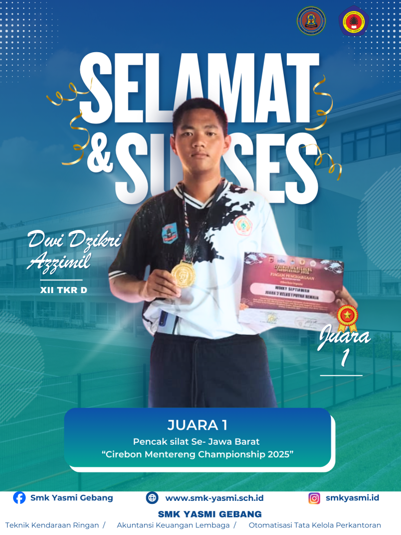 Tiga siswa SMK YASMI GEBANG mampu merebut Gelar Juara di Perlombaan Pencak Silat tingkat Jawa barat dengan perolehan 2 Medali Emas dan 1 Perak